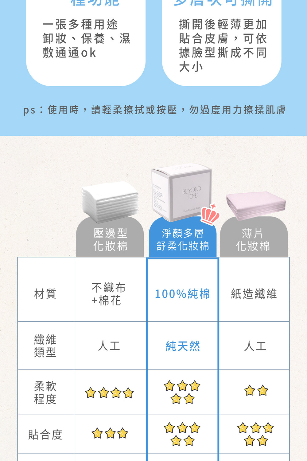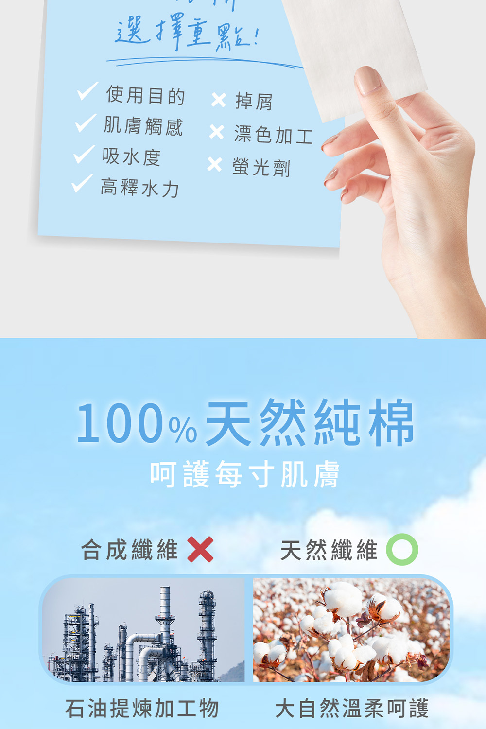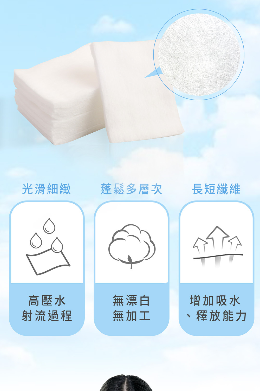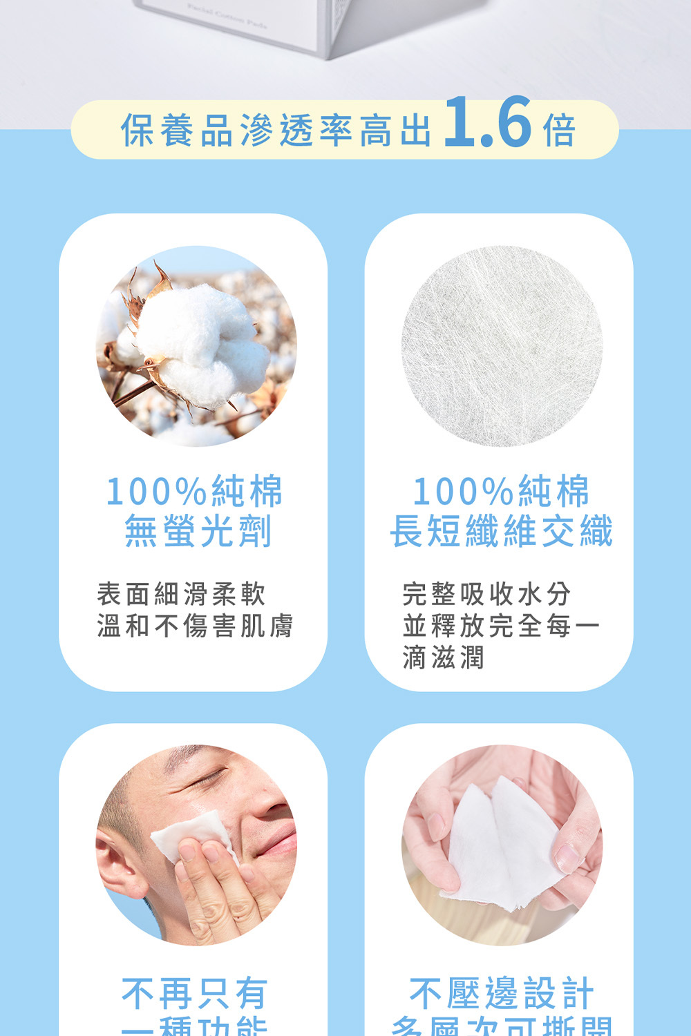 ◆100%純棉,不留棉絮,化妝、卸妝、濕敷保養一盒搞定!